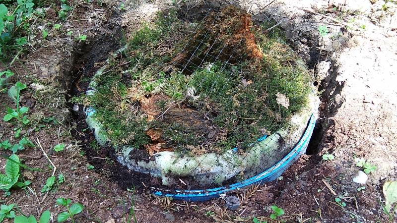 Deine Idee hab ich gleich umgesetzt, ist schon sehr viel ansprechender als der Reisig Haufen. Hab an den vier Ecken jeweils eine Eisenmutter mit Draht angemacht. Das Kuststoffgitter braucht man gar nicht mit Drähten auf Abstand halten, es liegt nur punktuellauf auf, ich glaub das reicht.