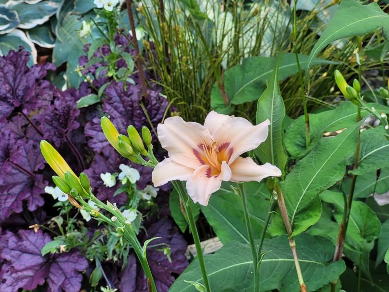 Ich weiß, ich zeige hier nichts Besonderes... Aber hier blüht trotz dieser Hitze noch 'Lynn Hall' ganz nett zusammen mit dem dunkelroten Kerzenknöterich 'Blackfield'. Sie hat an beiden Horsten noch gefühlt mindestens 50 Knospen parat. ;D