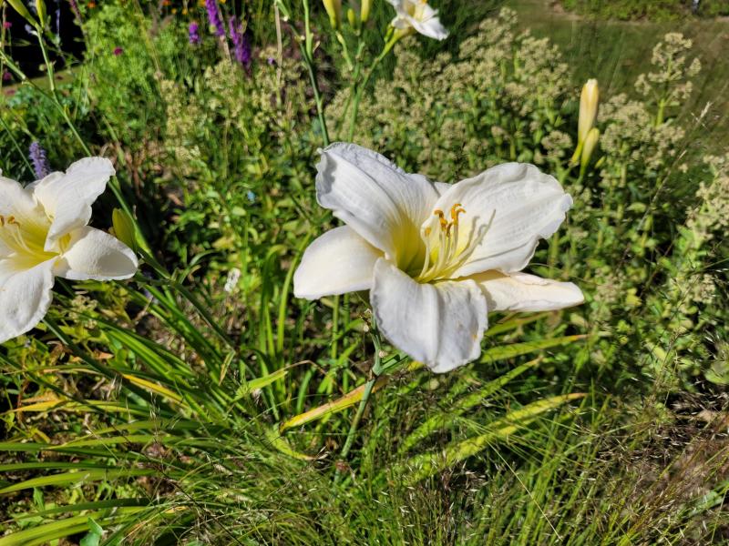 In praller Sonne ist zwischen den Gräsern 'Gentle Sheperd' auch von Weitem noch recht wirkungsvoll. 8)