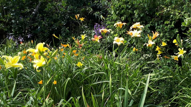 Ich weiß, ich zeige hier nichts Besonderes... Aber hier blüht trotz dieser Hitze noch 'Lynn Hall' ganz nett zusammen mit dem dunkelroten Kerzenknöterich 'Blackfield'. Sie hat an beiden Horsten noch gefühlt mindestens 50 Knospen parat. ;D