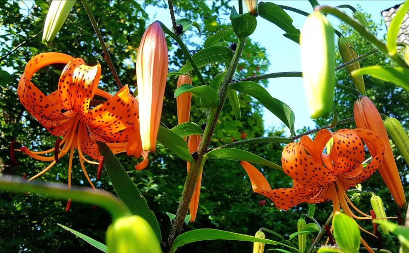 Die ersten Blüten der Tigerlilien. ( Müssten eigentlich Leopardlilien heißen )