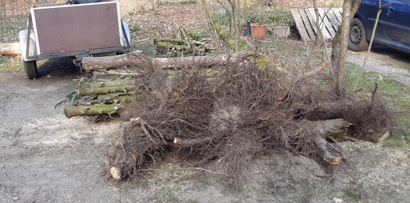 Letzte Woche haben wir es endlich geschafft die Lebensbäume zu entasten und die Zweige abzufahren (waren zwei randvoll Anhänger). Vor 2Wochen hatte ich schon die Rosen und Stauden geschnitten und das Laub aus den Beeten entfernt.