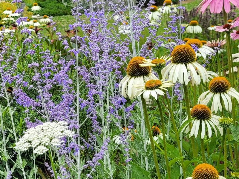Hier blueht auch eine Perovskie, " Lacy Blue ", mir Monarde und Phlox