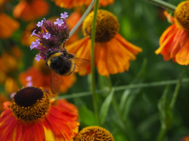 Besonders gefragt war heute das Beet mit Helenium und Verbena bonariensis.