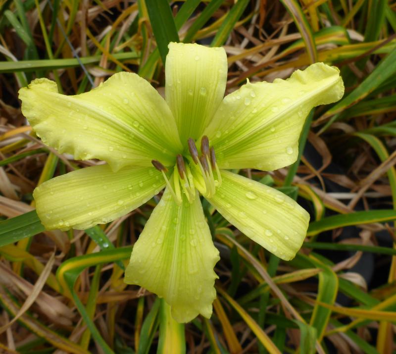 Und noch eine Unbekannte, die heute gegen die morgendliche Regentrübheit anleuchtete. Müsste ebenfalls eine Sorte sein, aber es ist nicht Fooled Me, deren Blüten wesentlich derber sind.