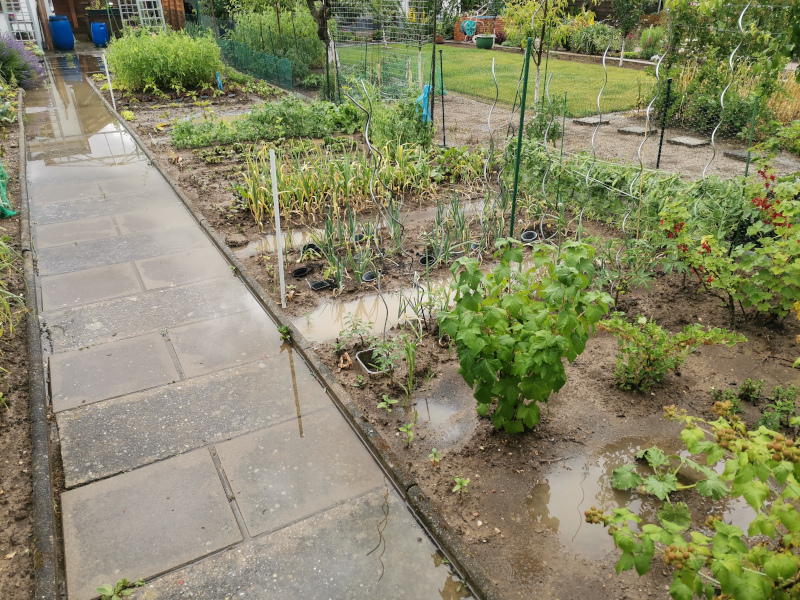 Das Wasser bleibt ewig stehen, der Boden kann es nicht aufnehmen. Zudem sieht man jetzt ein paar Wochen später massiven Stickstoffmangel an den Pflanzen. Eine Folge von kein Humus mehr im Boden. Der wurde durchs tothacken schlicht verbrannt.