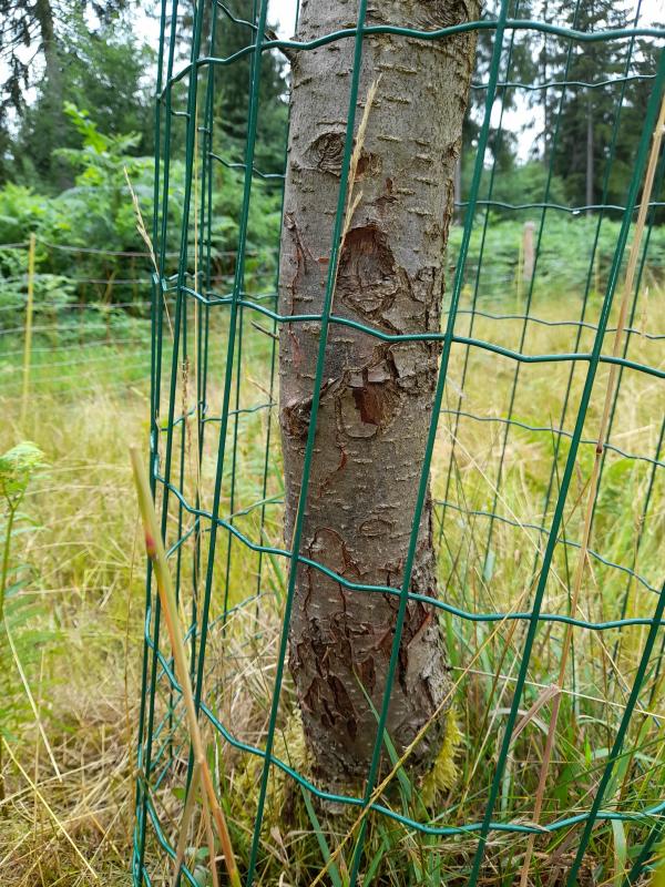 Hier noch ein Bild von der Pralinenobstwiese. Da ist auch ein Baum wohl abgänging. Man beachte den Baumschutz. Nicht, dass es hinterher heißt, die Schafe hätten geschält 8)