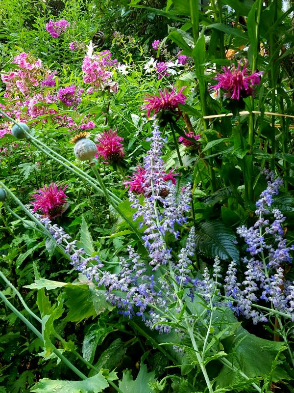 Hier blueht auch eine Perovskie, " Lacy Blue ", mir Monarde und Phlox