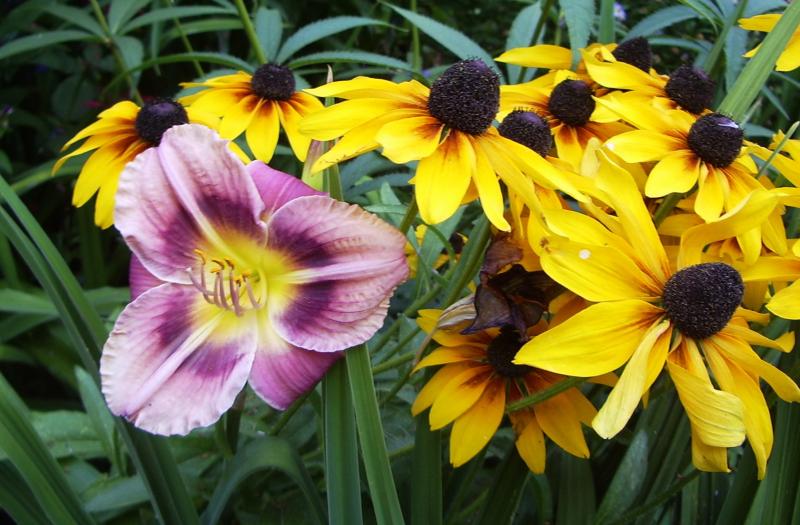 Vielleicht pflanze ich ihn auch einfach erstmal zusammen mit Echinacea 'Magnus' vors Haus an die Straße, so wie ich das mit diesem Sämling und Rudbeckia auch gemacht habe, bloß dass ich da vor zwei Jahren nicht wusste, wie der Sämling aussehen würde und sich die Kombi schließlich als recht nette Überraschung entpuppte.
