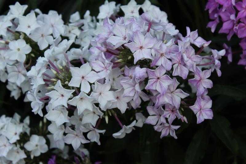 Von wem dieser niedrige und spät blühende Phlox abstammen könnte, kann ich auch nicht sagen. Er tauchte vor drei Jahren an einer Stelle auf, auf der eigentlich ein Phlox carolina austreiben sollte. Er scheint vom Laub her und von der späten Blütezeit her ein reiner Phlox paniculata zu sein.
