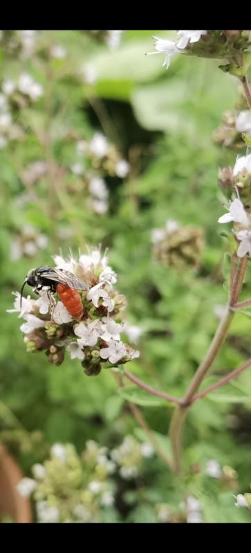 Mein Oregano ist momentan ein sehr beliebter Ort für Schmetterlinge, Wespen und Bienen aller möglichen Arten. Ich hab mich bei den größeren und daher etwas leichteren Wespen und Bienen mal an Fotos und Bestimmung versucht.