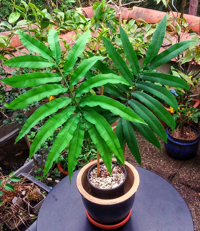 Dieser Palmfarn ( genaue Bezeichnung kenne ich nicht, bin Laie auf dem Gebiet) gehört meinem 4jährigen Enkel und ich habe ihn zur Erholung/ Rettung zu mir geholt - er wäre sonst vertrocknet.