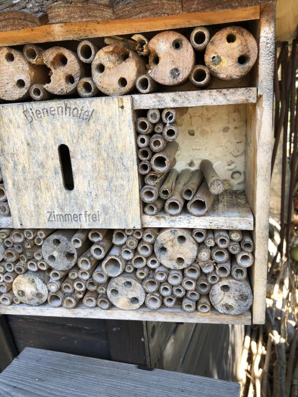 Mal was anderes: Eines der "lieben Vögelchen" hier scheint unser Bienenhotel als Buffet für sich entdeckt zu haben. Ständig pflückte es mir die Röhrchen raus. Das nervt nicht nur die Bewohner, sondern auch mich: