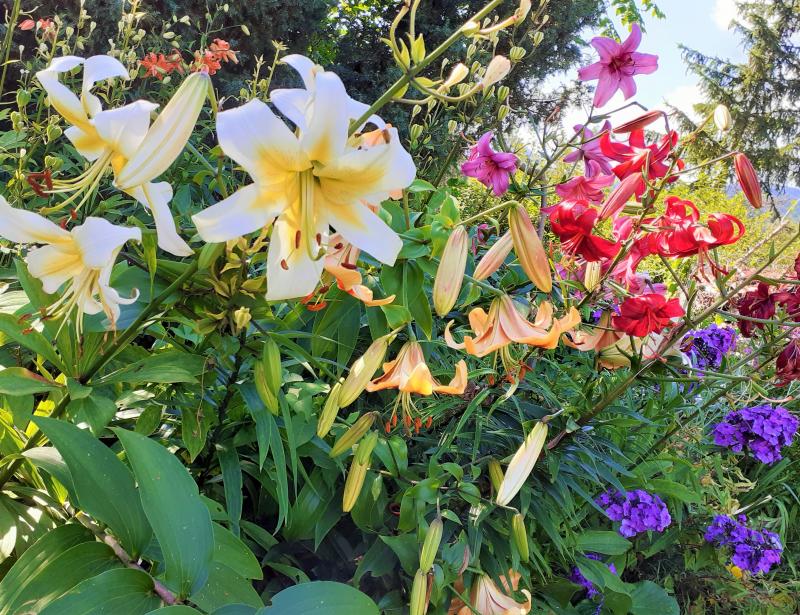 Die letzten Lilien sind hier schon verblüht. Duftende Alpenveilchen wollen hier leider nicht. Sie leben immer irgendwo irgendwie weiter, aber Blüten gibt es bei den purpurascens kaum.