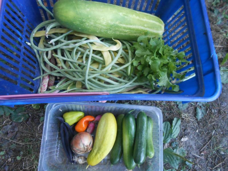 Gurken hätte es noch viel mehr zu ernten gegeben, aber wir haben noch so viele zu Hause, dass wir sie jetzt lieber mal an den Pflanzen belassen wollten.