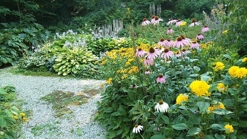 Foxys Staudenbeet mit Sonnenblumen ist (mal wieder) beeindruckend üppig. Schön.