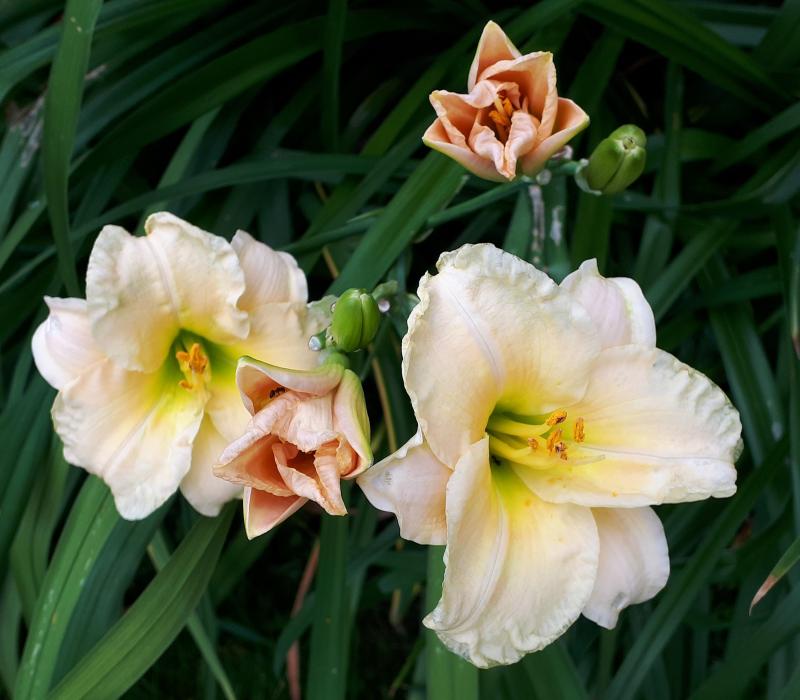 eigentlich heißt es ja immer, Taglilien könnten auf ewig ungestört am selben Platz verbleiben, ohne wirklich nachzulassen. Das mag für das Gros wohl auch zutreffen, aber nach meiner Erfahrung gibt es ebenso vereinzelt Kandidaten, die regelmäßig "den Frischekick" brauchen. Als prominentes Beispiel möchte ich da Trahlyta nennen, die sehr schnell in die Vollen geht und dann blütentechnisch regelrecht abbaut bis hin zur Nullblüte. Dann wird es Zeit, den Horst aufzunehmen, zu teilen und frisch in neue nährstoffreiche Erde zu pflanzen.