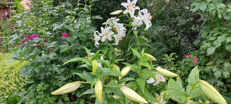 Pollux, das ist mal eine sehr schöne Kombi mit Tiger-Lilien. Dass die erst jetzt bei Dir blühen.