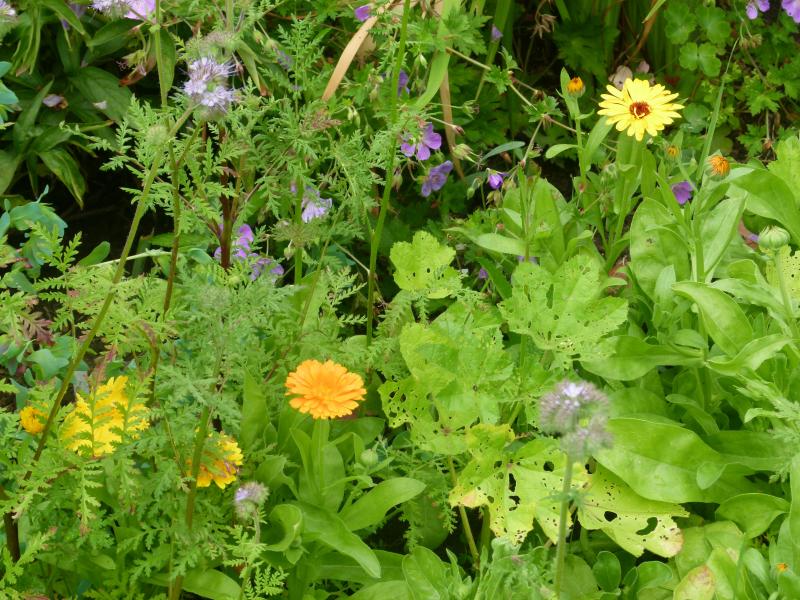 Noch jüngere Bistorta sehen eigentlich ganz gut aus. Schlecht kommt der Fadenknöterich zurecht, der aber auch noch nicht blüht.