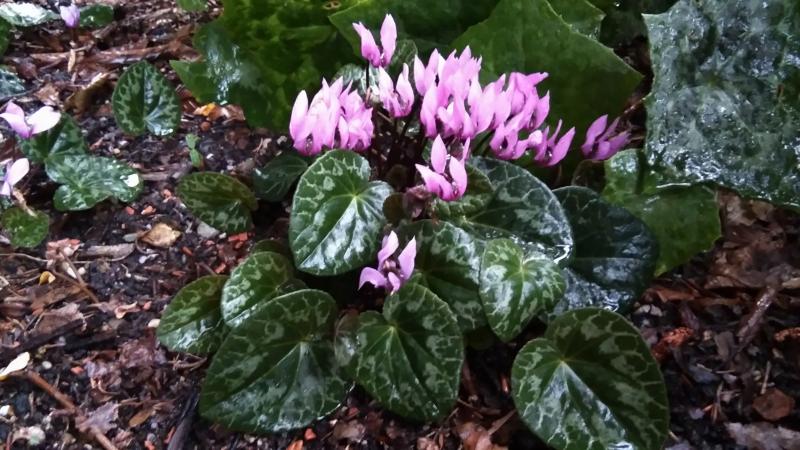 Hier ein C. hederifolium was tatsächlich im Garten schon blüht, an heißem Platz und dann noch welche in Töpfen, Sämlinge.