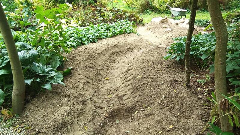 Wege angelegt und Findelsteine auf "stone hill" positioniert.