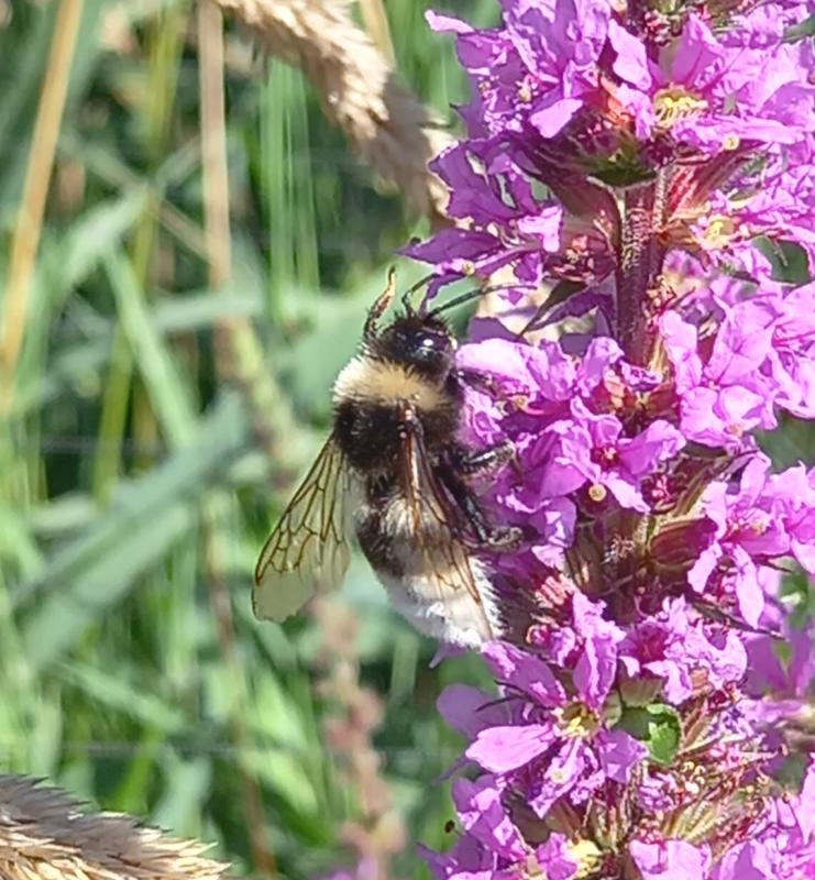 Von diesen kleineren Wildbienen schwirren viele im Blutweiderich