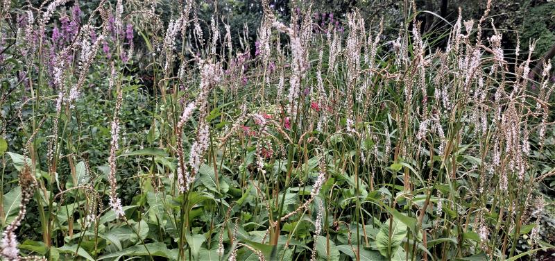 Dagegen ist die ausgepflanzte Leycesteria unauffällig, aber von Nahem betrachtet interessant und lädt zum genaueren Betrachten ein.