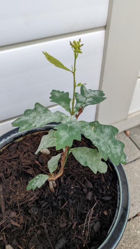 Mit Mehltau und frischer Umpflanzung von Granulat auf Erde, weiß nicht ob die Eiche das überlebt hätte? Vielleicht war das ein Fehler von mir aber vielleicht auch richtig, das könnt ihr besser beurteilen.