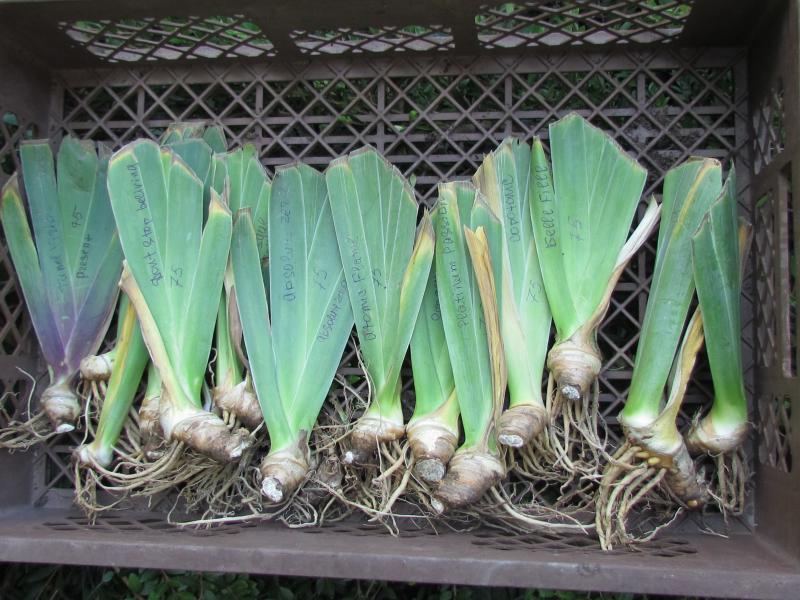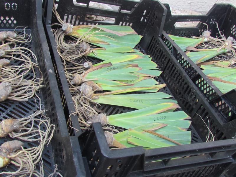 Sie sind etwas lichtmangelig, hier und da gibts ein matschiges altes Einzelblatt und gelegentlich ist ein leichter oberflächlicher und nicht ins Rhizom eingedrungener Pilzflaum zu sehen. Nichts was irgendwas ausmacht, woanders nicht auch schon mal der Fall war und was sich nicht beheben lässt. Momentan liegen sie deswegen locker, schattig und luftig in Kisten, das Weiterverschicken/-geben folgt um die Wochenmitte. Die mitbestellten Sibirica und Kaempferi sind getopft, es besteht also keine Austrocknungsgefahr.