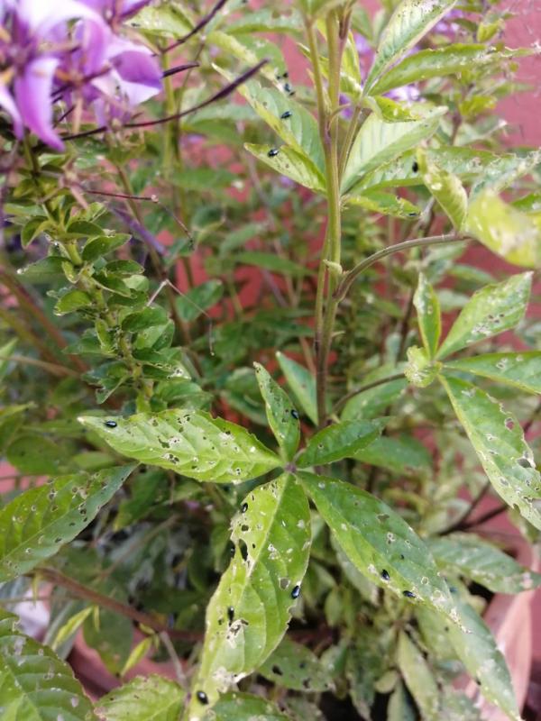 Bei meiner Mutter im blumentopf ist dieser Käfer tausendfach vertreten. Er fraß innerhalb weniger tage diese schöne Blume. Einige Meter weiter ist die Pflanze auch befallen.