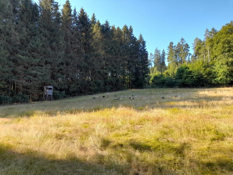 Also rechts neben meinem Kamerastandpunkt aus, floss mal ein Bach. Davon sieht man nichts mehr. Der Bach ist - wie mehrfach erwähnt - auch im Winter nicht da. Das ist übrigens das Tal der hiesigen Trinkwasserversorgung. Es gibt keine Warnung für diesen Brunnen, der 2018 schon mal kur vor Wasserwagenversorgung stand. Ergo röhrt der Hochdruckreiniger im Ort genauso wie auch sonst mitnichten der Ernst der Lage erkannt wird. Gut. In diesem Jahr wird die Lummerke noch nicht versiegen. Wenn wir Wasserwagenversorgung haben, wird das für Tiere nicht reichen. Also stapeln wir uns dann auf der Lummerke.