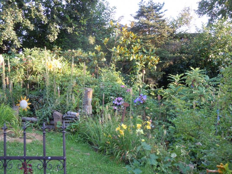 Gesamtansicht in der Abendsonne. Momentan dominieren Gelb- und Lilablau-Töne. Lilium henryii steht aber schon in den Startlöchern. ;D