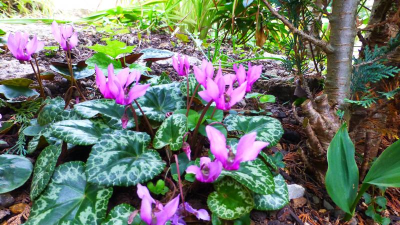 Nun zeigen sie sich von ihrer schönen Seite. Cyclamen purpurascens