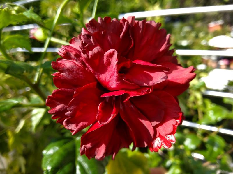 mein namenloser roter, ich habe ihn ca. 15 Jahre, der Stamm hat unten 3-4cm Durchmesser. Mindestens alle 2 Jahre Rückschnitt, hatte ihn im März auf ca. 25cm zurückgenommen. Dann ist er schön kompakt und kippt bei Sturm nicht um ;D. Aktuelle Höhe 50-60cm, bisher einzelne Blüten, demnächst legt er ernsthaft los.