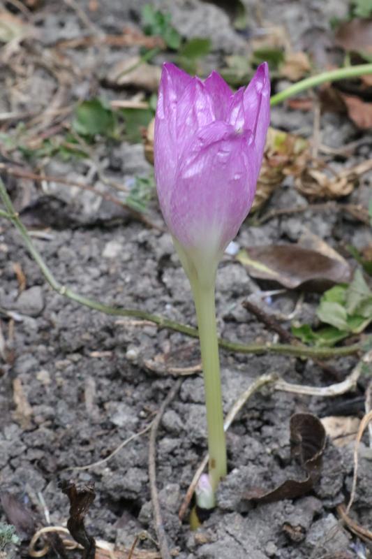 Die anhaltende Dürre ohne Aussicht auf Veränderung lässt den Garten immer deprimierender aussehen, zwei Herbstzeitlose haben sich nichtsdestotrotz durch den hartgebackenen Boden gekämpft: Colchicum bivonae ´Vesta´...