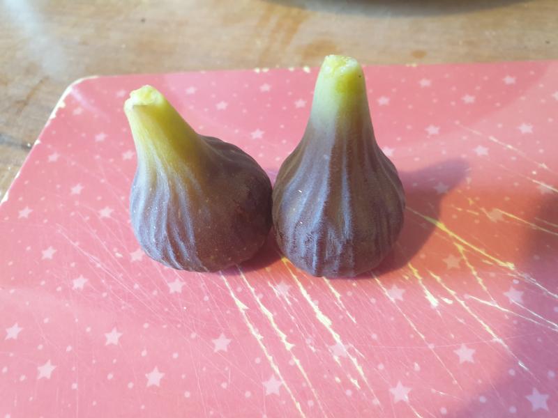 Danke für die Antwort. Hier mal ein paar Fotos der besagten Feige. Geschmacklich sind die Herbstfeigen auch dank der andauernden Trockenheit sehr gut. Sehr süß und ein angenehmes Aroma (Kokos??). Crunch durch Kerne gibt es überhaupt keinen. Fruchtgewicht bei ca. 25-30g pro Feige. Hab auch mal ein Foto einer etwas überreifen Breba dazugepackt. Diese war einfach nur süß und hatte sehr knusprige Samen. Vielleicht hat ja wer eine Idee, was es für eine Feige sein könnte. Die Blattform unterscheidet sich am Baum auch teilweise. Im Stammbereich sind die Blätter gezackt und nicht abgerundet wie beim Rest des Baums.