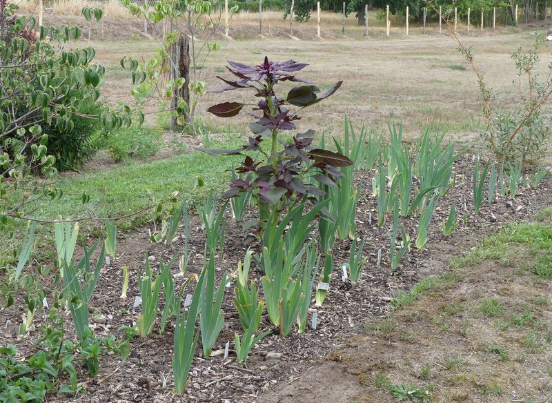Ich finde Irisbeete ja klasse, da kommen sie viel besser zur Geltung als zwischen anderen Stauden, meine ich. Hier müssen sie sich mit anderen grüngrau-laubigen arrangieren, mein Irisbeet war schneller zu klein/eng als gedacht.