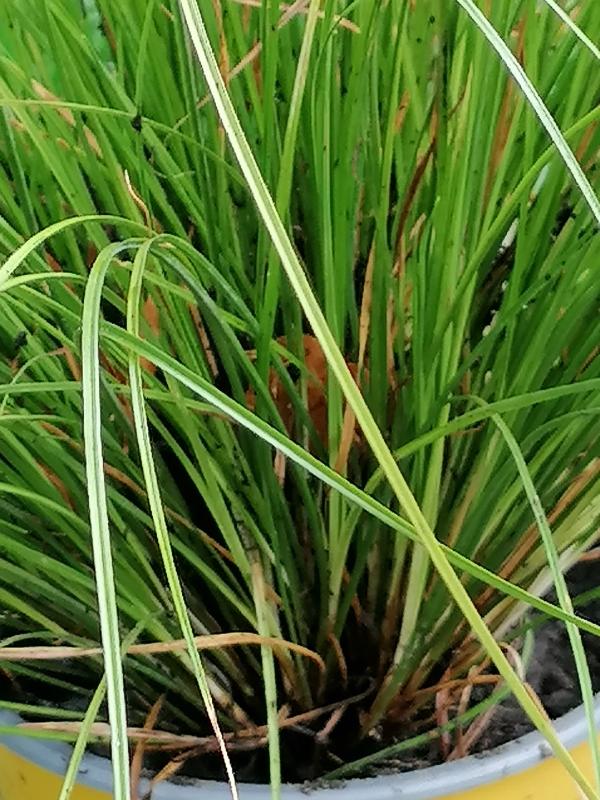 Dieses Gras habe ich heute im Friedhofsmüll gefunden. Der Querschnitt des Blattes ist dreieckig, ein Merkmal der Seggen, Carex. Weiter weiß ich leider nicht. Die Halme sind in die Länge gezogen ca 60 bis 80 cm lang.