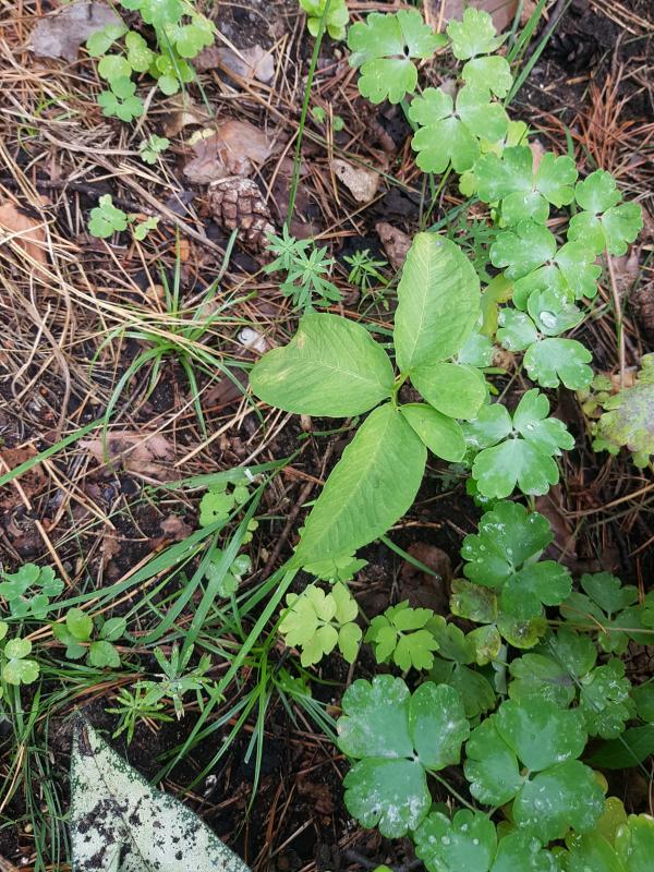 Bei mir wächst dieses Blatt, gepflanzt habe ich es da nicht, ich komme nur nicht drauf wovon.