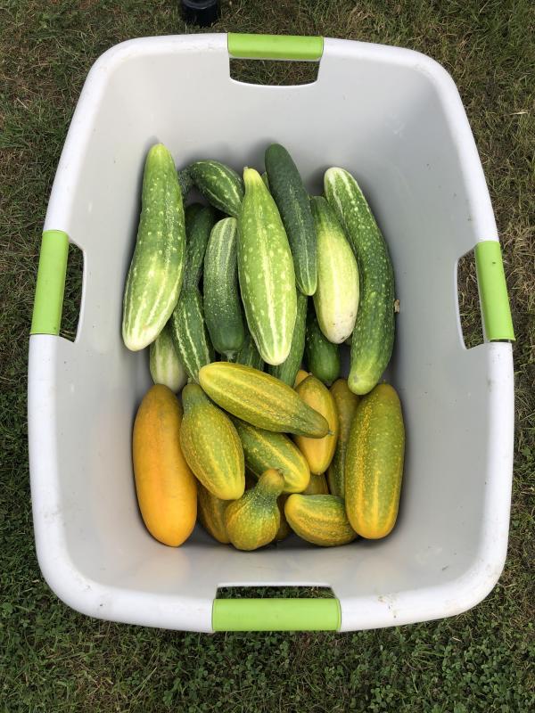 Die Gurken, trotz Mehltau, in guten Mengen. Ich habe erstmal nur die größten geerntet:
