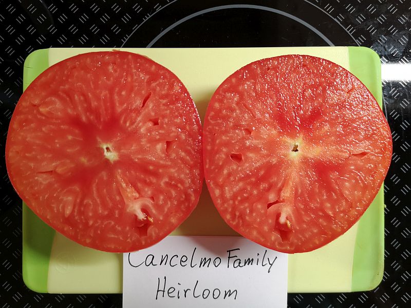 Bastelk hat geschrieben: ↑21. Aug 2022, 23:57 Ich möchte euch noch eine ganz besondere Sorte vorstellen, es ist die Cancelmo Family Heirloom. Die Samen hatte ich Anfang Mai von Juan66 bekommen. Die Pflanze wird 1,7 m groß. Die Früchte haben ein zart schmelzendes Fruchtfleisch, süß aromatisch, feste Schale (bei dem Wetter kein Wunder) und schmecken leicht salzig. Gedüngt hatte ich nicht. Die ersten Früchte konnten wir schon Anfang August kosten und es ist eine typische Ochsenherztomate und diese ist sehr früh reif. Also eine große Fleischtomate, aromatisch und wirklich pflegeleicht. Die Pflanze ist sehr ertragreich, hatte aber auch 20 % BEF. Bei diesem heute geernteten Monster mit über 300 g hatte ich schon ein Gläschen zum Ausschlachten der Kernchen bereitgestellt und es gab eine Überraschung. Diese Tomate enthält nicht ein einziges Kernchen. Und ich habe wirklich gründlich gesucht. In anderen Früchten habe ich einige wenige Kernchen gefunden, echt Schade.