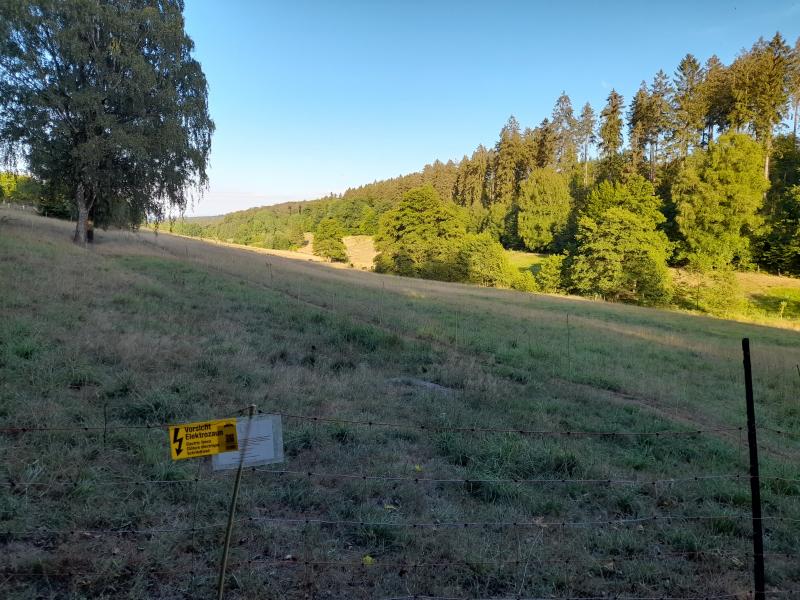 Etwas ärgerlich war, dass ich gestern Abend noch überlegt hatte, ob ich da nicht schon mal die Hälfte abzäunen soll. Hatte mich dann aber wegen Sonntag Abend und mit Rücksicht auf die berufstätigen Jäger zurück gehalten. Wie man´s macht, man macht´s verkehrt :P