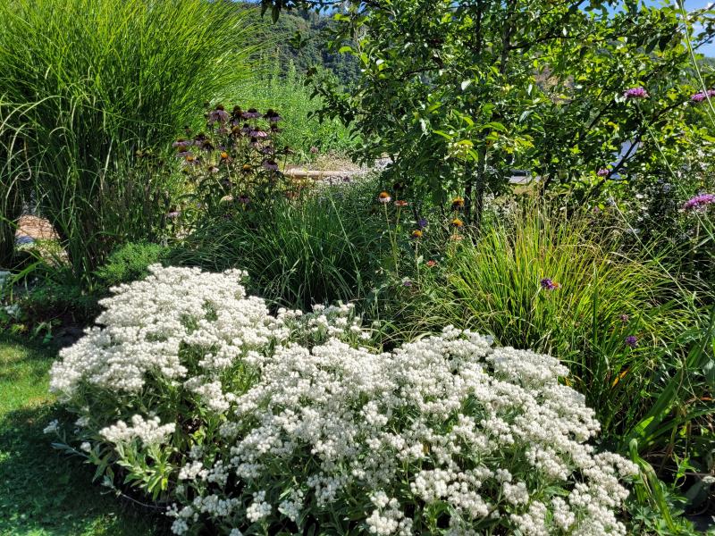 Purpurea Alba noch schön im Schutz des mächtigen Miscanthus Gracillimus. ;D