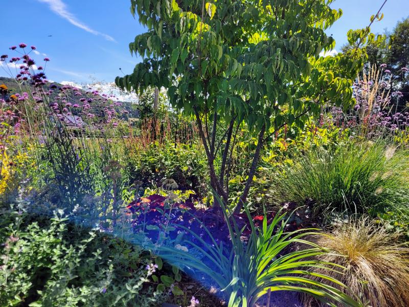 Für zweiwöchige Abwesenheit sieht der Garten grün, üppig und farbenprächtig aus. Das Steppenbeet gefällt mir besonders.