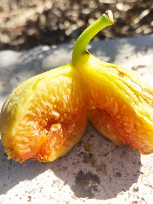 Das war ein Gaumenerlebnis... Die leicht "knusprige" Schale und das flüssige, erfrischende innere. Für eine 1 jährige Feige war sie sehr gut und dürfte durchaus potenzial haben.