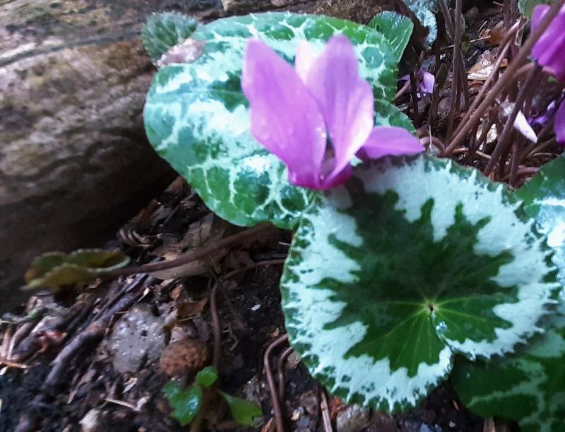 Ich habe mir am Samstag bei RB 3 Cyclamen graecum mitgenommen, das Laub ist zu schön, die Blüten auch. Ausgepflanzt, sie stehen da recht geschützt und trocken unter der Treppenstufe, relativ sonnig, da sie die wohl für die Bildung der Blüten benötigen. Notfalls muss ich ab und an wässern (dort kein Problem) und im Winter bei starkem Frost eventuell mit Vlies abdecken.