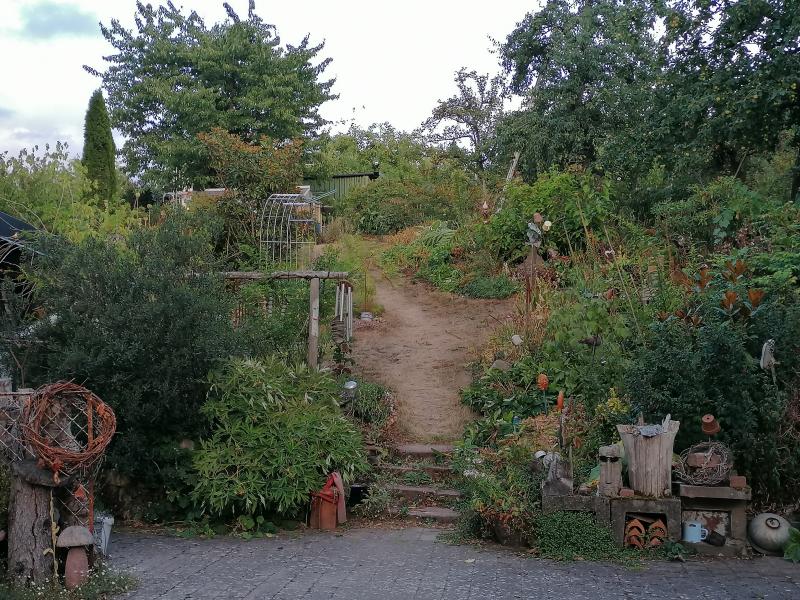 Mal oberflächlich drüberfotografiert vom Stuhl an der Hauswand sieht es trotz Dürre noch nach (wildem) Garten aus. Ich darf halt nicht so genau schauen 8)