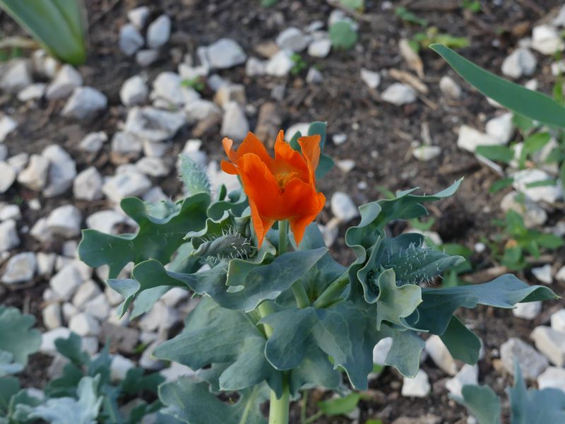 Hier erfreut mich Glaucium flavum var. aurantiacum. Das kleine Pflänzchen aus dem 9er Topf hat in den letzten heißen Wochen einen ordentlichen Spurt hingelegt und geht nun nochmal in Blüte.