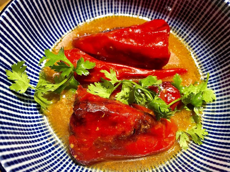 mit biorinderhackfleisch gefüllte gartenchili – es sollte die chinesische vorspeise letztens nachempfinden, schmeckt aber leider nur anders gut. 8) ;)
