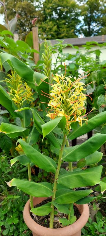 Hedychium gardnerianum öffnet endlich einigermaßen die Blütenstände. Sonst immer nacheinnander... ;)